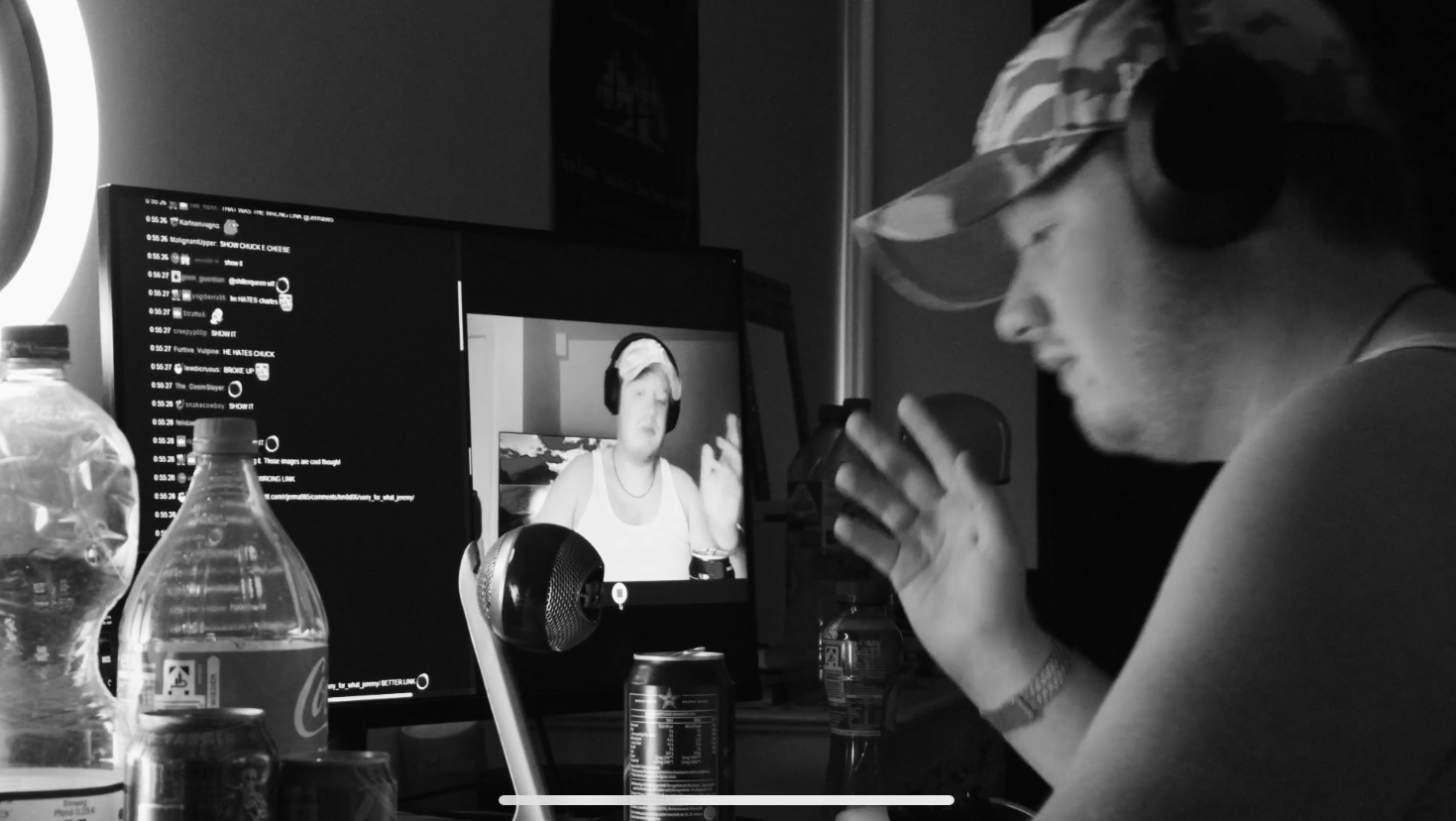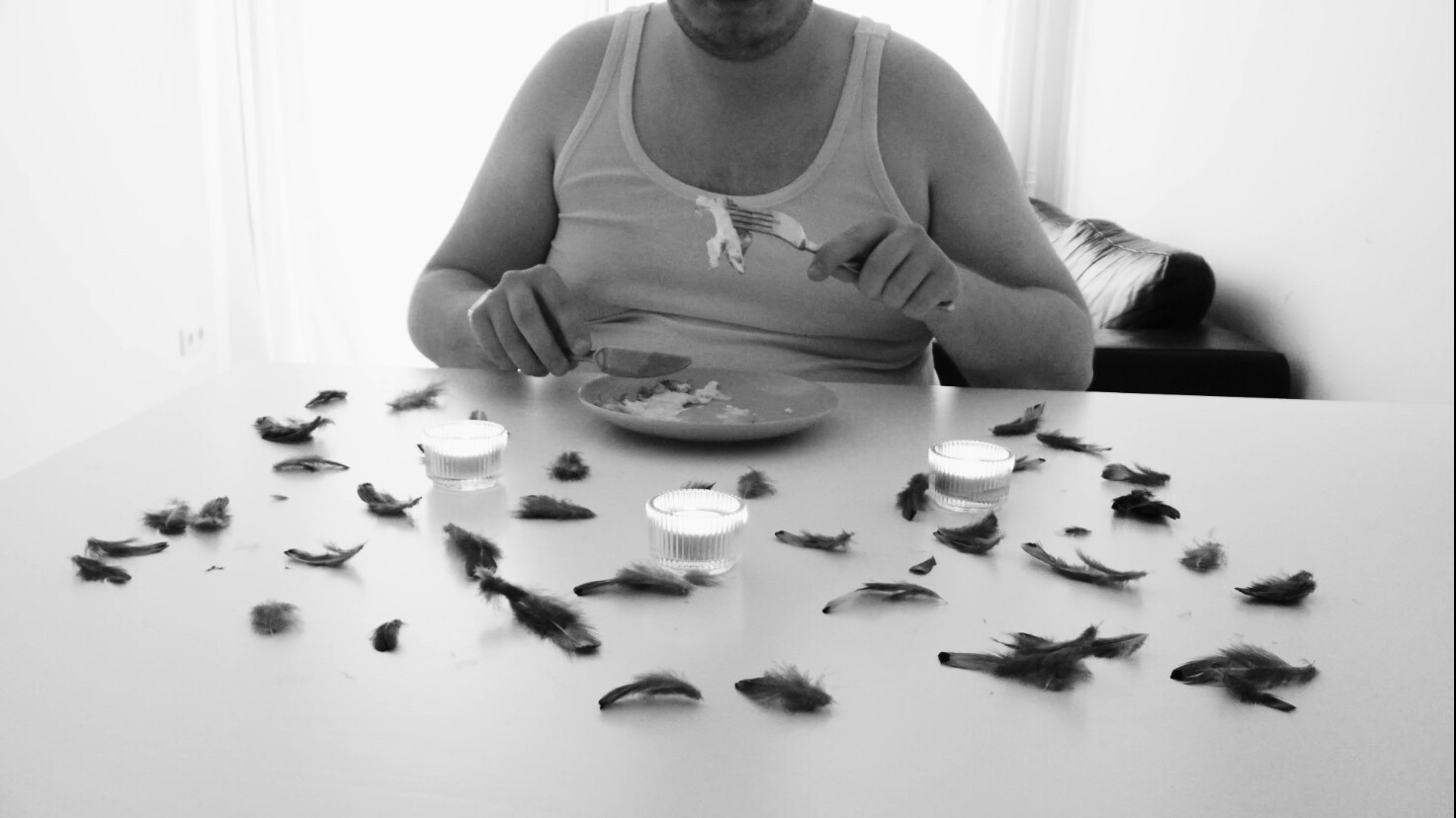 In einer schwarzweißen Kleinstadtatmosphäre von Pinneberg streamt ein junger Content Creator nahezu ununterbrochen aus seiner Wohnung. Während eines “Online-Rants” beleidigt er einen konkurrierenden Streamer abfällig als feiges Hühnchen, eine Aussage, die unerwartete Konsequenzen hat. Kurz darauf scheint sich die Vogelwelt gegen ihn zu verbünden: Beim täglichen Gang zum Müll wird er von Vögeln verfolgt und zunehmend in einen surrealen Konflikt hineingezogen. In einer ritualhaften Zuspitzung wird er gezwungen, selbst ein Ei zu legen. Die abschließende Szene zeigt ihn isoliert in seiner Wohnung, wo er das Ei in einem stillen Akt konsumiert, gefangen zwischen Transformation und Selbstzerstörung.