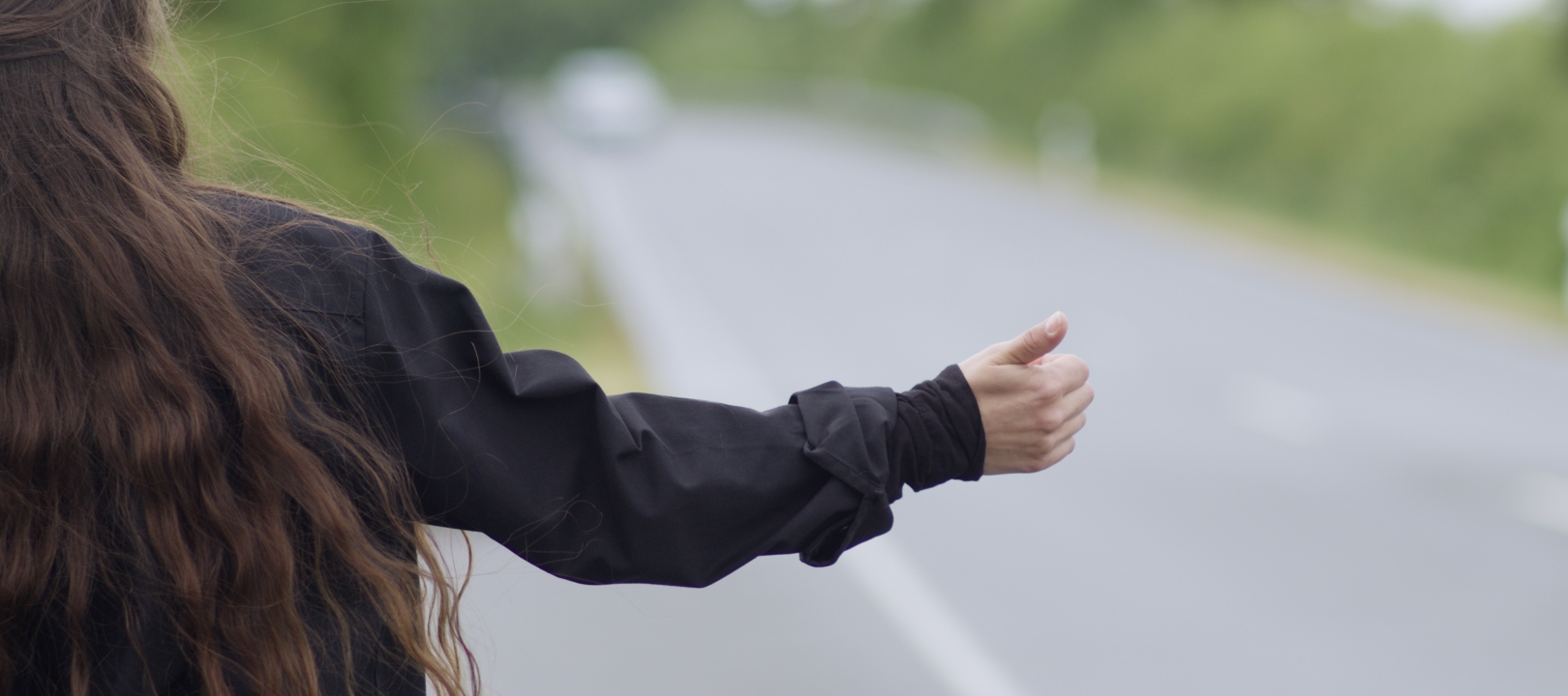 "Per Anhalter" ist ein düsterer Kurzfilm über Kontrolle, Gewalt und die trügerische Sicherheit flüchtiger Begegnungen – ein makabres Katz-und-Maus-Spiel, in dem Täter und Opfer nicht mehr zu unterscheiden sind.