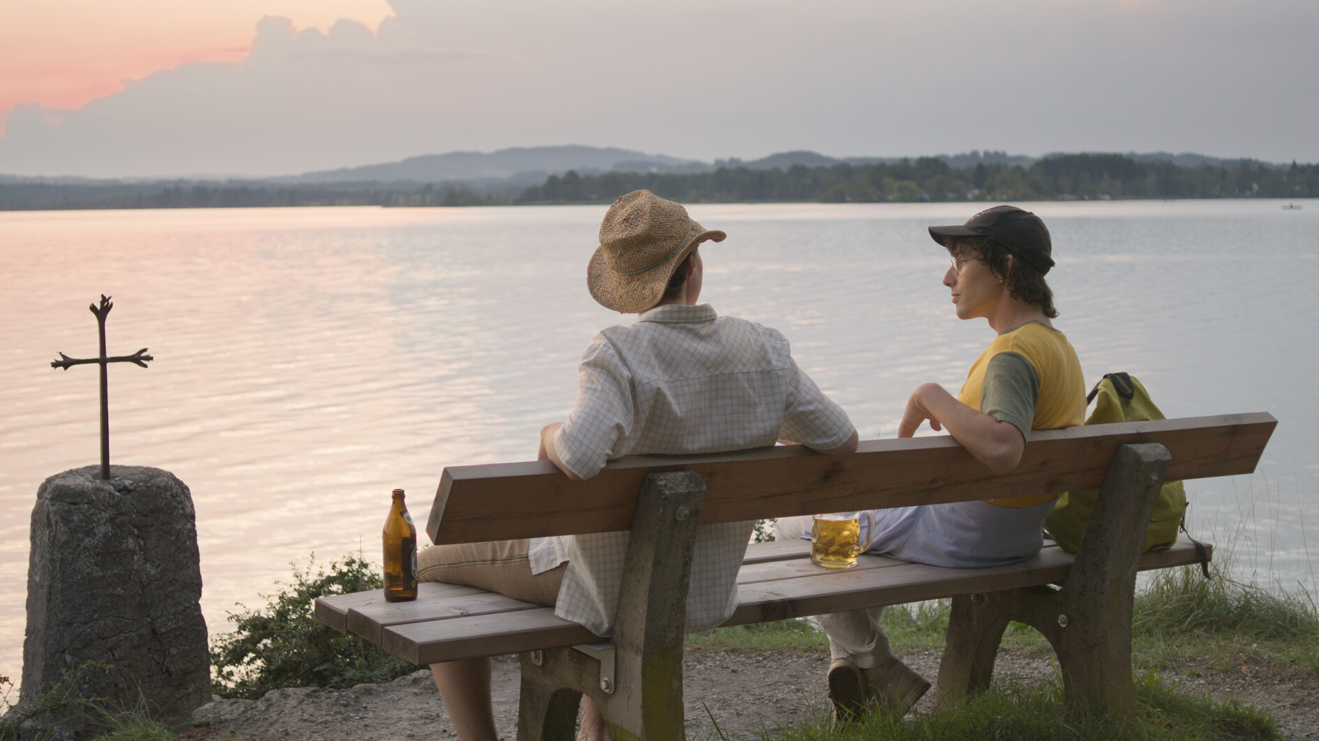 „Reich und Schön“ führt in die Matrix eines bayrischen Dorfes ein. Dort treffen Daniel, ein Einheimischer, und David, ein Tourist aus den USA, während ihrer Sommerferien aufeinander. Die rasch etablierte Nähe verschlägt die beiden auf eine Insel des ortsanliegenden Sees.
