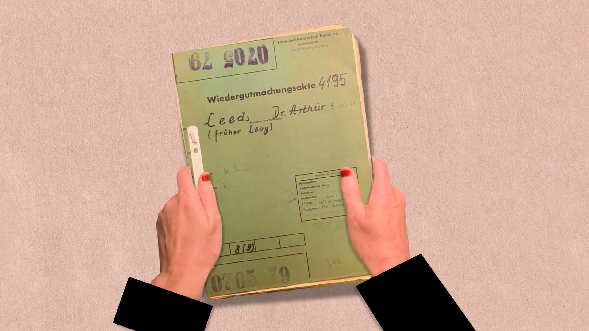 Dr. Arthur Levy war ein jüdischer Arzt in Hamburg-Wilhelmsburg. Er und seine Familie mussten 1938 vor den Nazis fliehen und kämpften in den 1950ern um "Wiedergutmachung". Dieser Film versucht, den Leben der Familie Levy nachzuspüren, obwohl wir diese Menschen nur aus den Akten ihres Wiedergutmachungsverfahrens kennen - und nicht einmal wissen, wie sie aussahen.